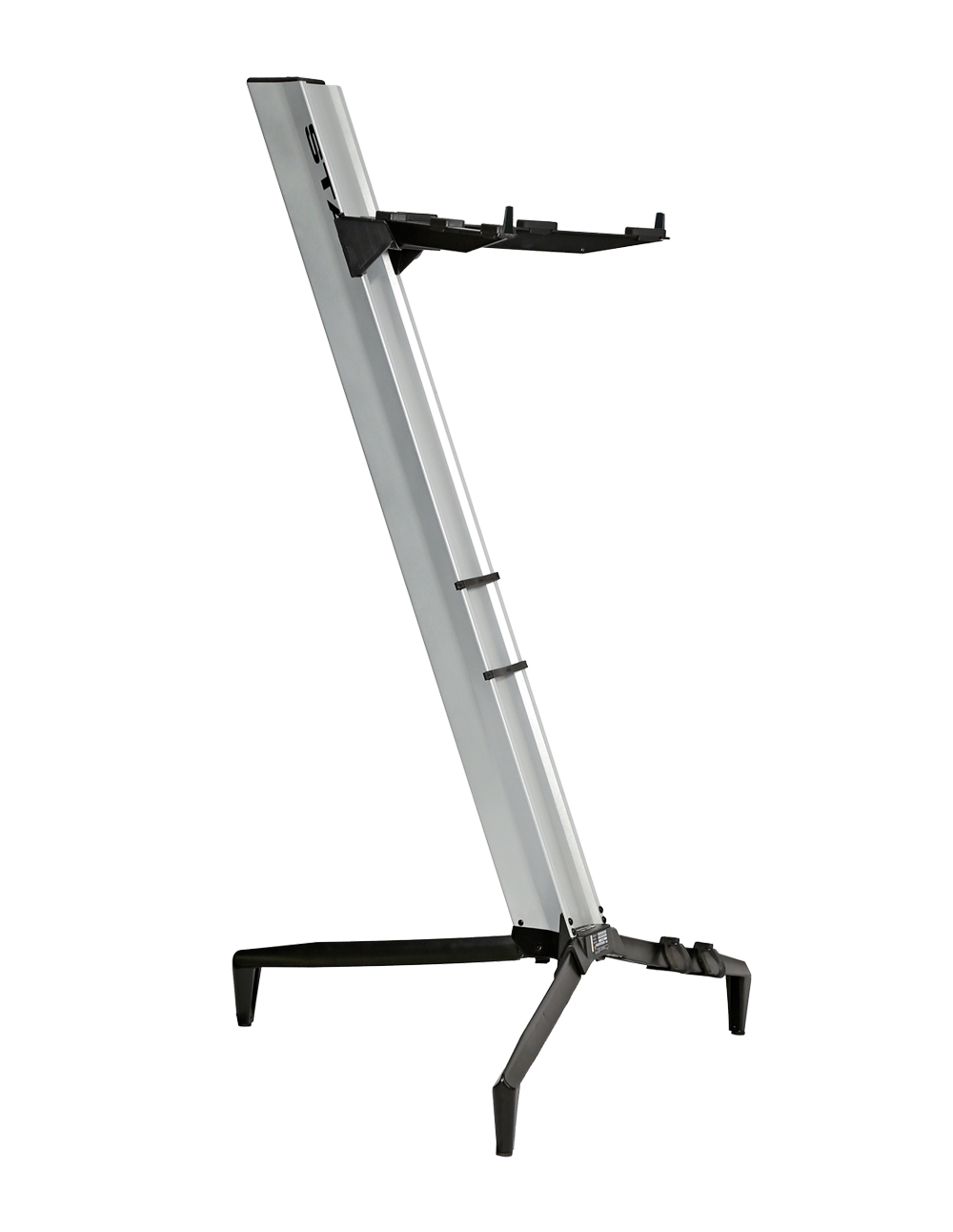 Suporte para teclados e periféricos em alumínio injetado sob pressão com design limpo, arrojado e super moderno. Material leve e muito resistente, montagem rápida que dispensa parafusos, canaleta para alojamento de fios, ergonômico, seguro e versátil.
